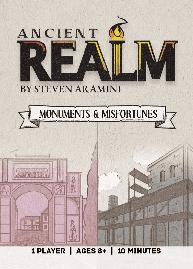 Monuments & Misfortunes Expansion - 6 card expansion packed in a card sleeve; requires Ancient Realm Wallet Game