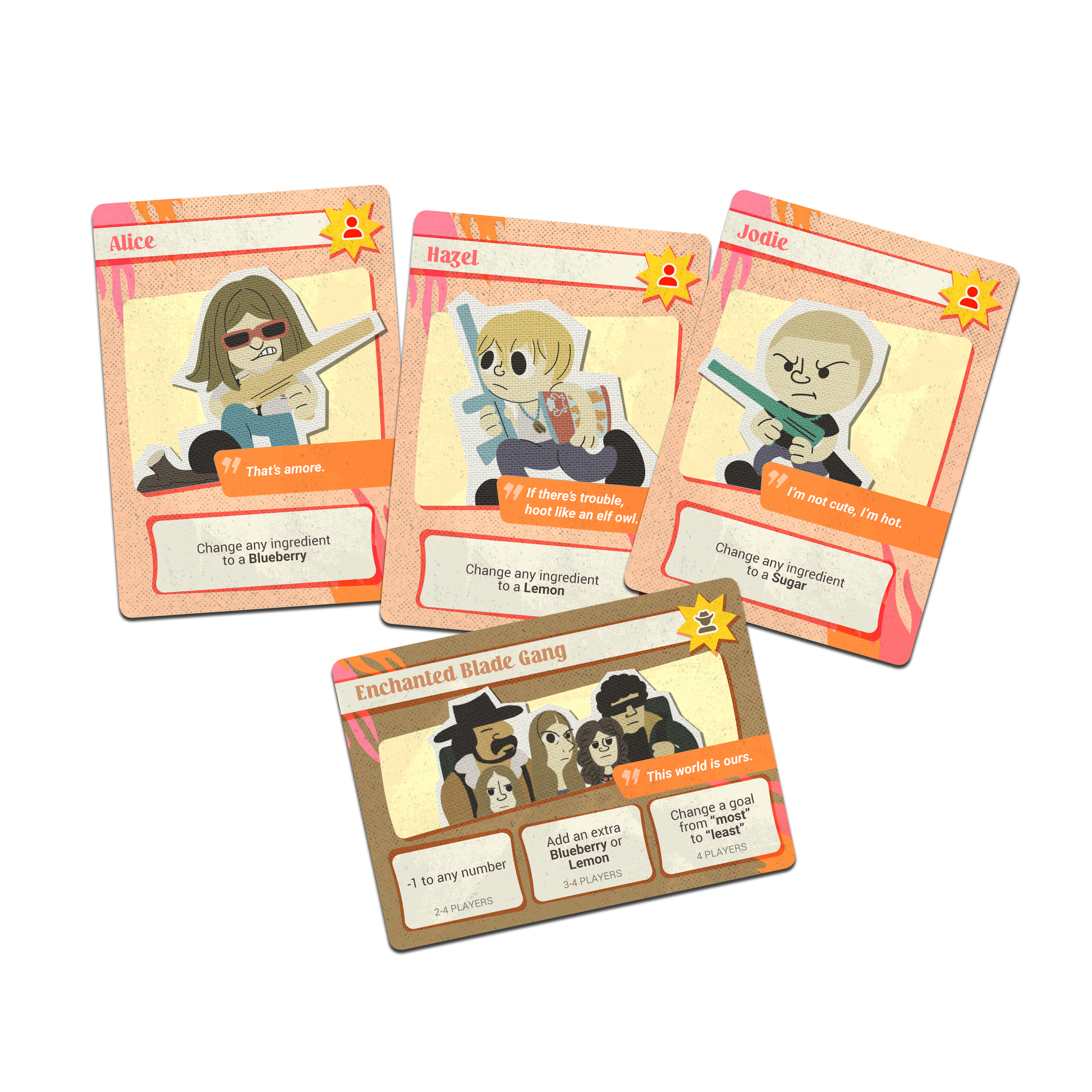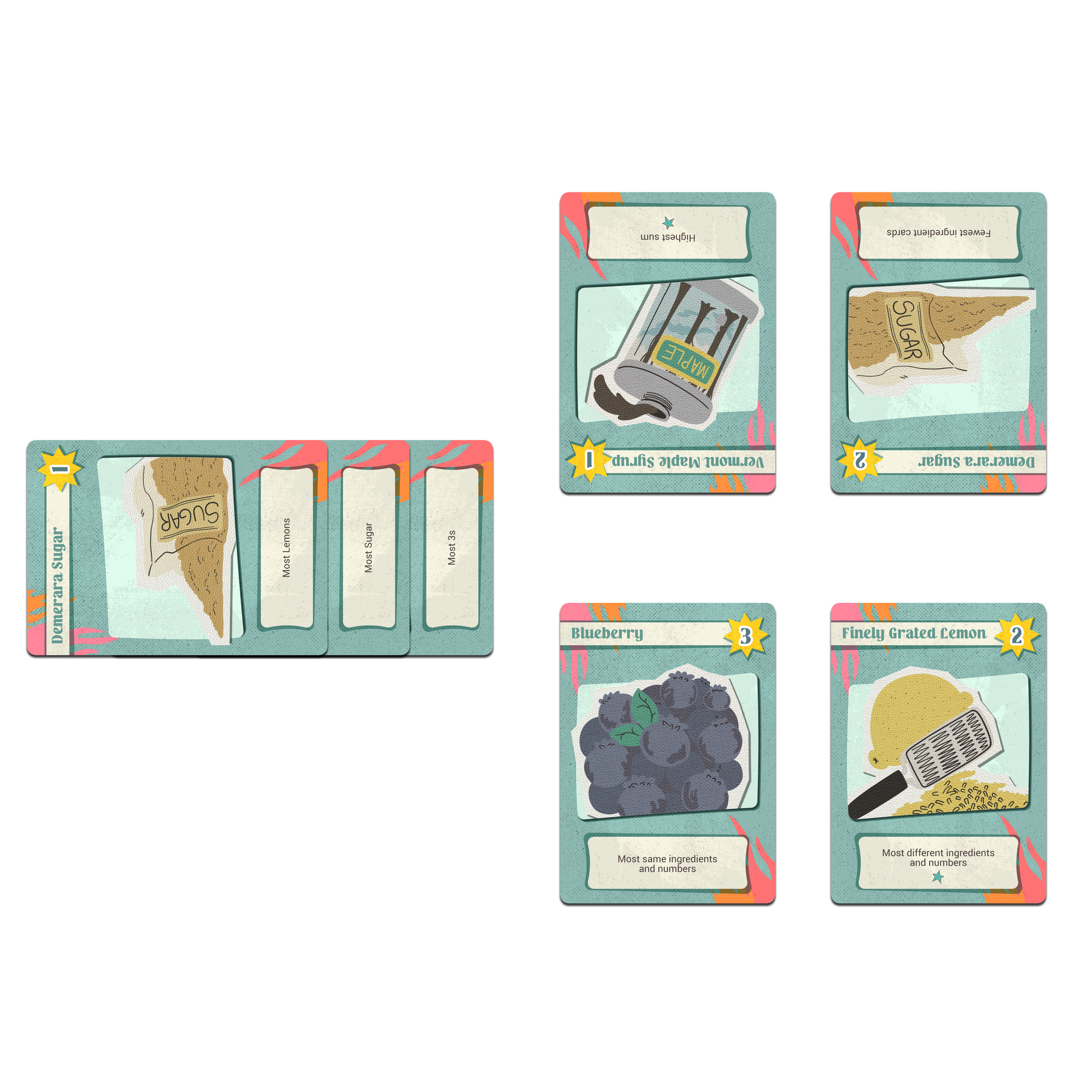 Riddle Of Fire: One Speckled Egg is a 2-4 player set collection game where one player plays as the gang and each other player plays on a team of kids, all trying to get control of the One Speckled Egg. Each round, players will play their cards as goals to the goal group (for example: Most Blueberries) or as ingredients to their team's side of play (for example: a blueberry). Once all cards have been played, the team that earned the most goals takes control of the One Speckled Egg card. If that team already has control of the card, they win the game!