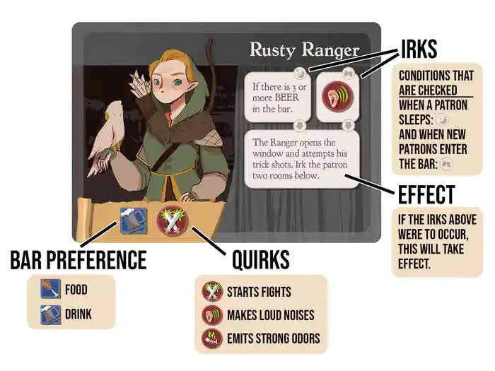 You’ve finally cleared out the bar and sent everyone off to bed...but what’s that sound? A knock at the door, at this hour? Why, it’s just what you need: MORE patrons jostling for a spot at your inn! It’s gonna be a long night...These patrons are particularly picky, and will make your night even more difficult!